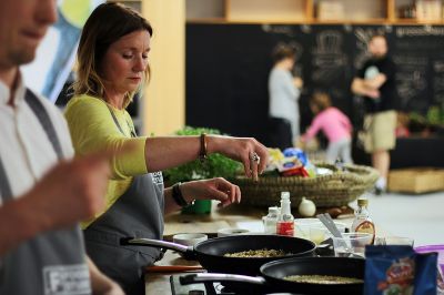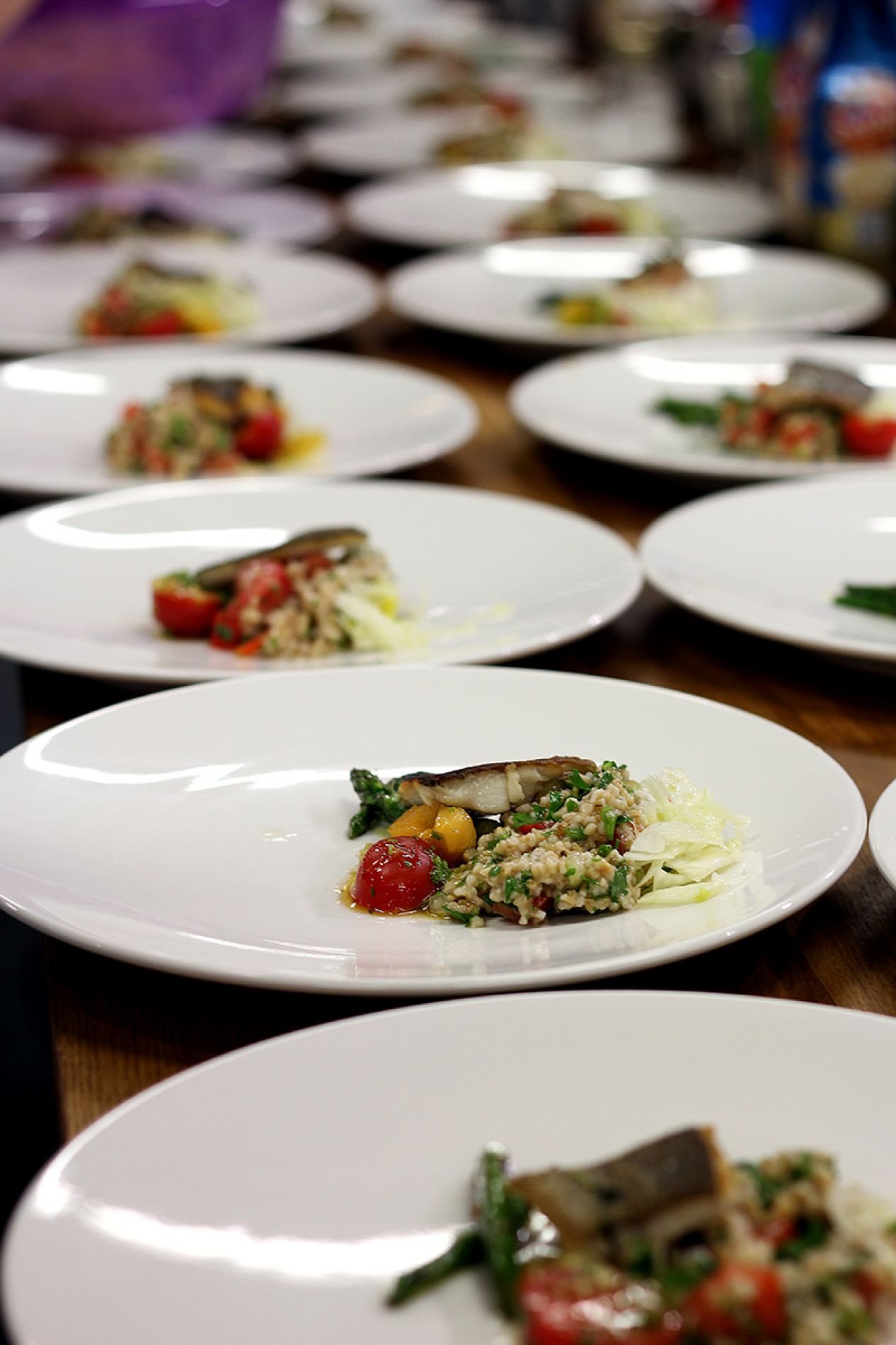 Dużym zainteresowaniem cieszyły się tarty owsiane z porem i fenkułem oraz rabarbarem i truskawkami. Grzegorz zaskoczył nas połączeniem kaszy owsianej z kiszoną cytryną w pysznym tabbouleh podanym z pstrągiem i szparagami, a na deser uczestnicy przygotowali owsiane trufle z chili i różaną granolę. Wszystko wyglądało pięknie i równie dobrze smakowało, a co najważniejsze było zdrowe i naturalnne.