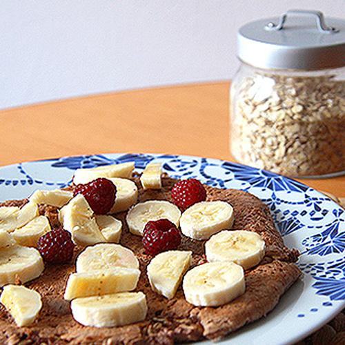 Ubij białka na sztywną pianę. Dodaj resztę składników, wymieszaj i usmaż jeden duży omlet lub kilka małych omlecików. Zrumień z obu stron i hop na talerz. Udekorujemy owocami, według upodobań smakowych.