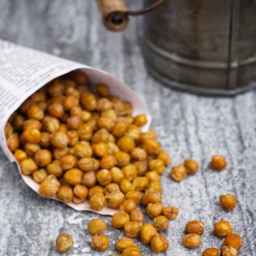 3. Rozprowadź na blasze, tak, by tworzyła jedną warstwę. Wstaw mieszankę do rozgrzanego piekarnika. Piecz 35 minut, w trakcie można 2 razy wymieszać, gdy cieciorka będzie chrupiąca przełóż ją do miski.