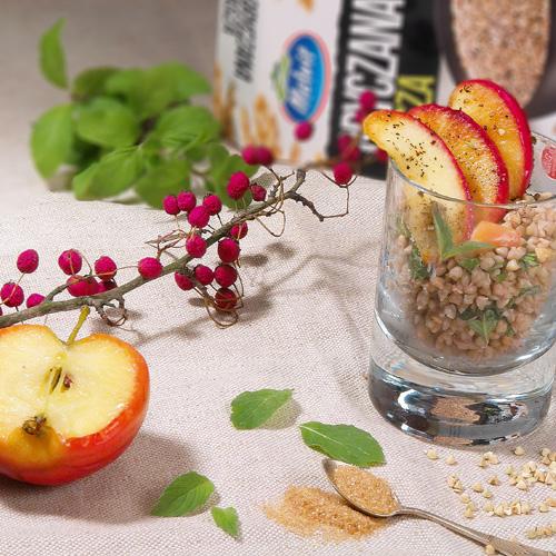 Przepis ze strony: http://www.melvit2.prosatis.pl/r_jablka-z-kasza-gryczana-biala-i-mieta_94