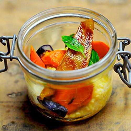 Kasza jaglana z pieczonymi warzywami i podsmażką