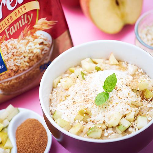 Owsianka soku jabłkowym i jogurtem greckim i owocami